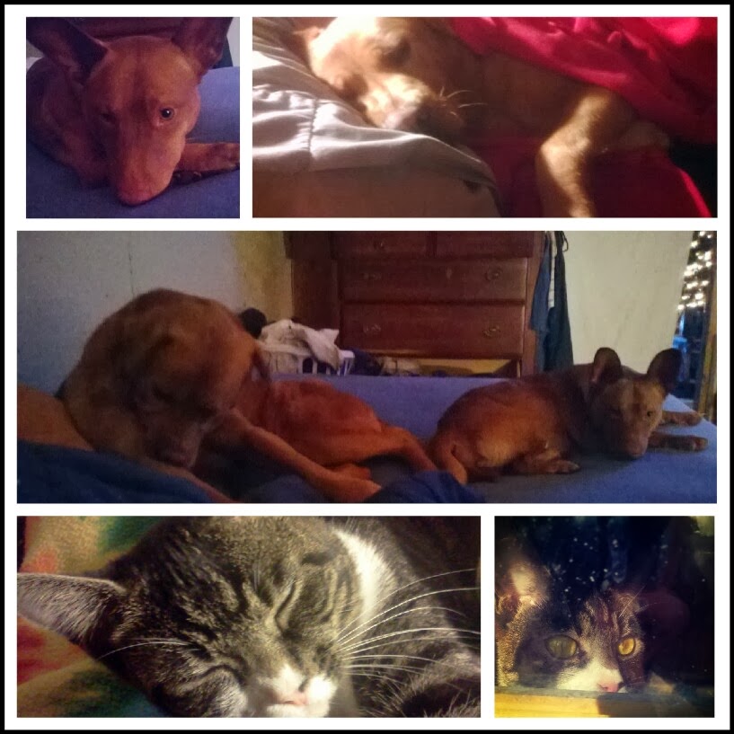 Theo hissed at first, but now they are friends! They touch noses and she head butts him in the chest (he's SO much bigger than she is!) and he will lick her.